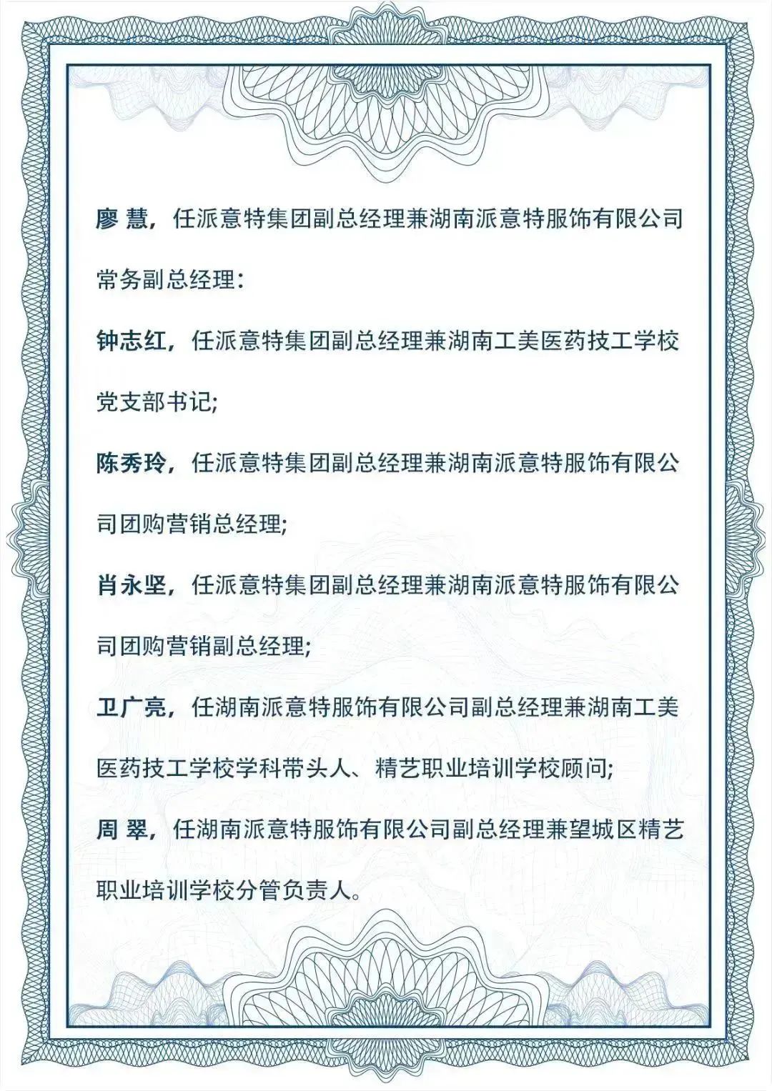 湖南派意特服飾有限公司創(chuàng)立于1993年,注冊資本2.3億元,是一家集設(shè)計、研發(fā)、生產(chǎn)、銷售、產(chǎn)教融合為一體的現(xiàn)代化服裝企業(yè)。 是中國包括公安部、最高檢、最高法、國家林業(yè)草原局、中國鐵路集團、中國郵政、中國聯(lián)通、中國郵儲銀行等十大部委行業(yè)職業(yè)裝入圍生產(chǎn)企業(yè)。 凝三十年制衣功力,傾情為您定制一件好衣服,公司應(yīng)用數(shù)字化、智能化技術(shù),建成億級版型大數(shù)據(jù)庫,擁有數(shù)百名從業(yè)超10年的"藍鉆技師。 憑借優(yōu)秀的柔性定制生產(chǎn)能力和良好的口碑成為全國近300家定制品牌的定制生產(chǎn)供應(yīng)鏈。